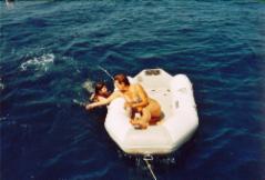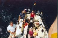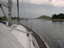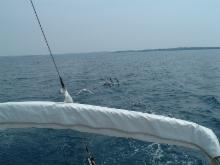 Delphine am Heck                                      Segelboot unter Vollzeug